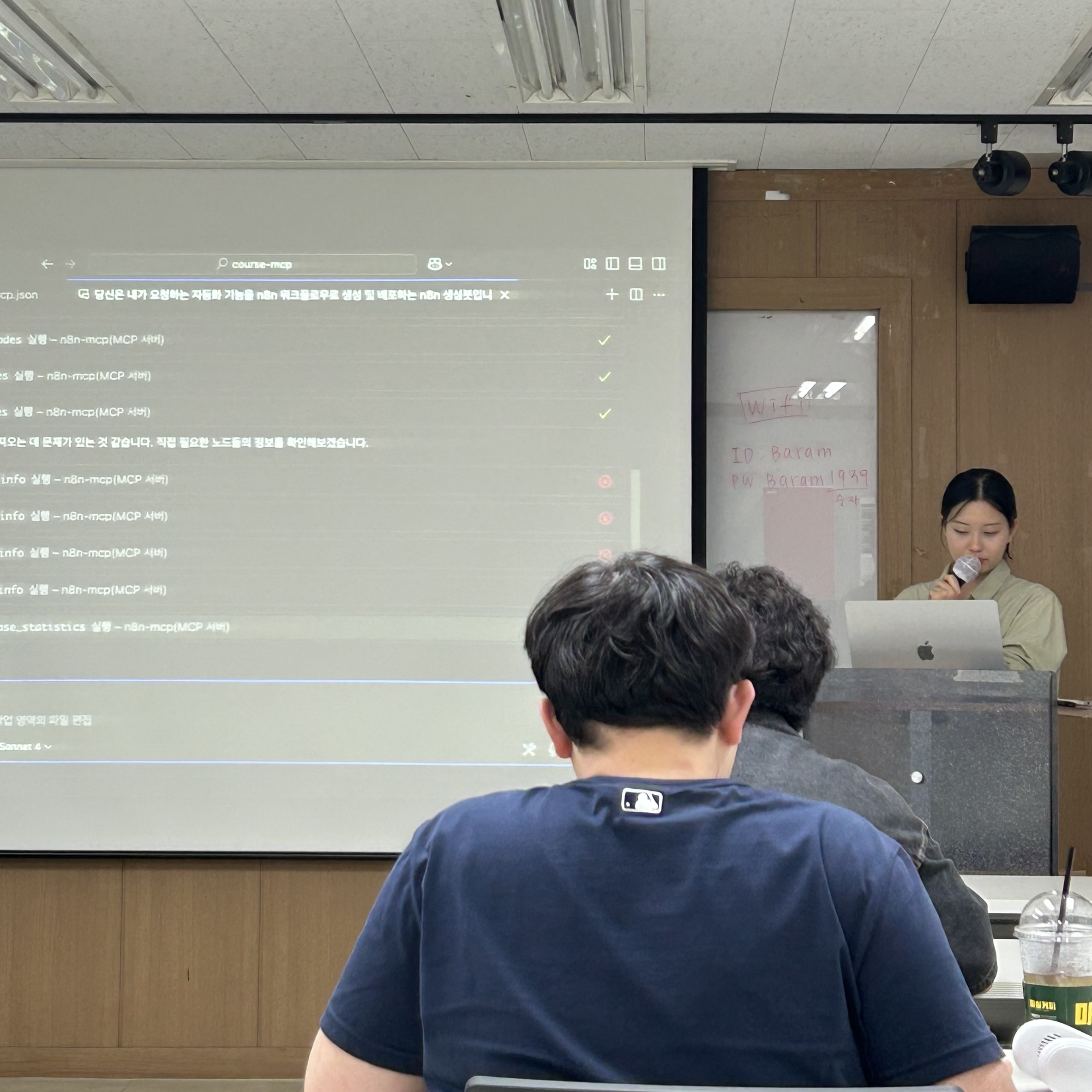 첫 번째 정식 강의는 여전히 떨렸지만, n8n 초보자의 어려움부터 시작해서 기존 LLM의 한계, MCP의 개념, 그리고 실제 n8n-mcp 사용법까지 체계적으로 설명할 수 있었다.