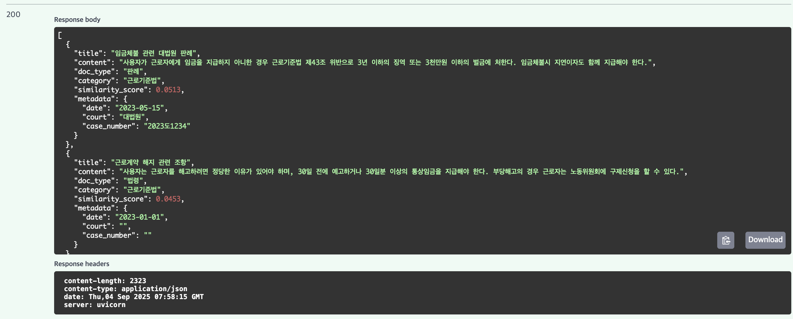 다음 단계: 실제 법률 데이터를 연동하고, 더 정교한 검색 알고리즘을 적용해보면서 실용적인 서비스로 발전시켜나가고 싶습니다.