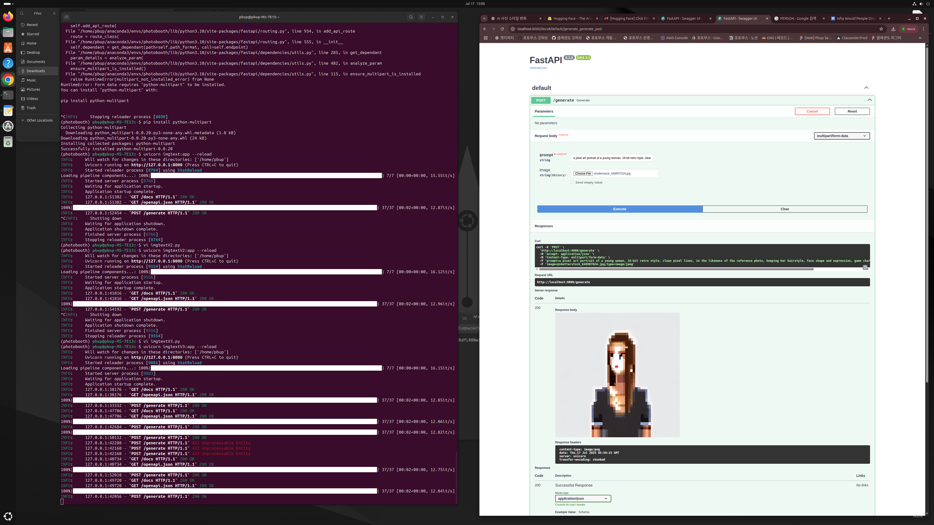 multipart/form-data로 프롬프트와 이미지를 함께 받아서, 변환된 이미지를 StreamingResponse로 바로 응답해준다.